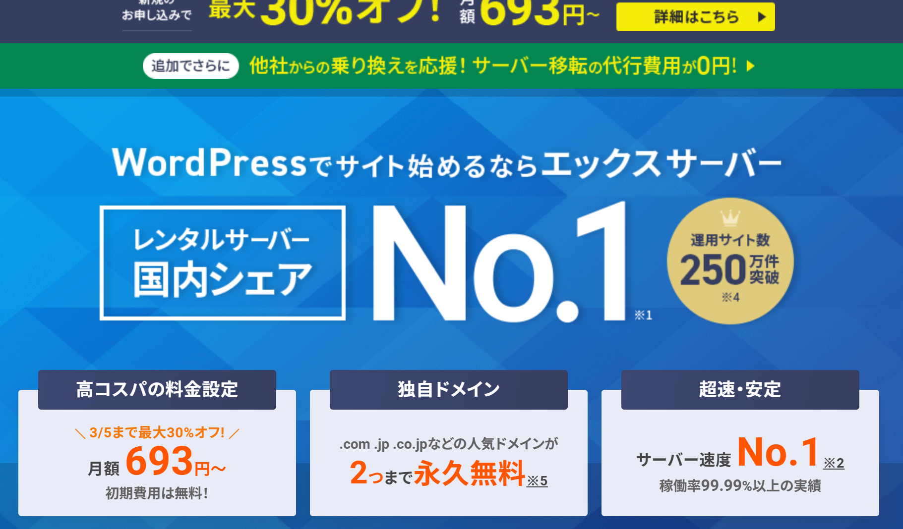 エックスサーバーは全サーバー中最強!