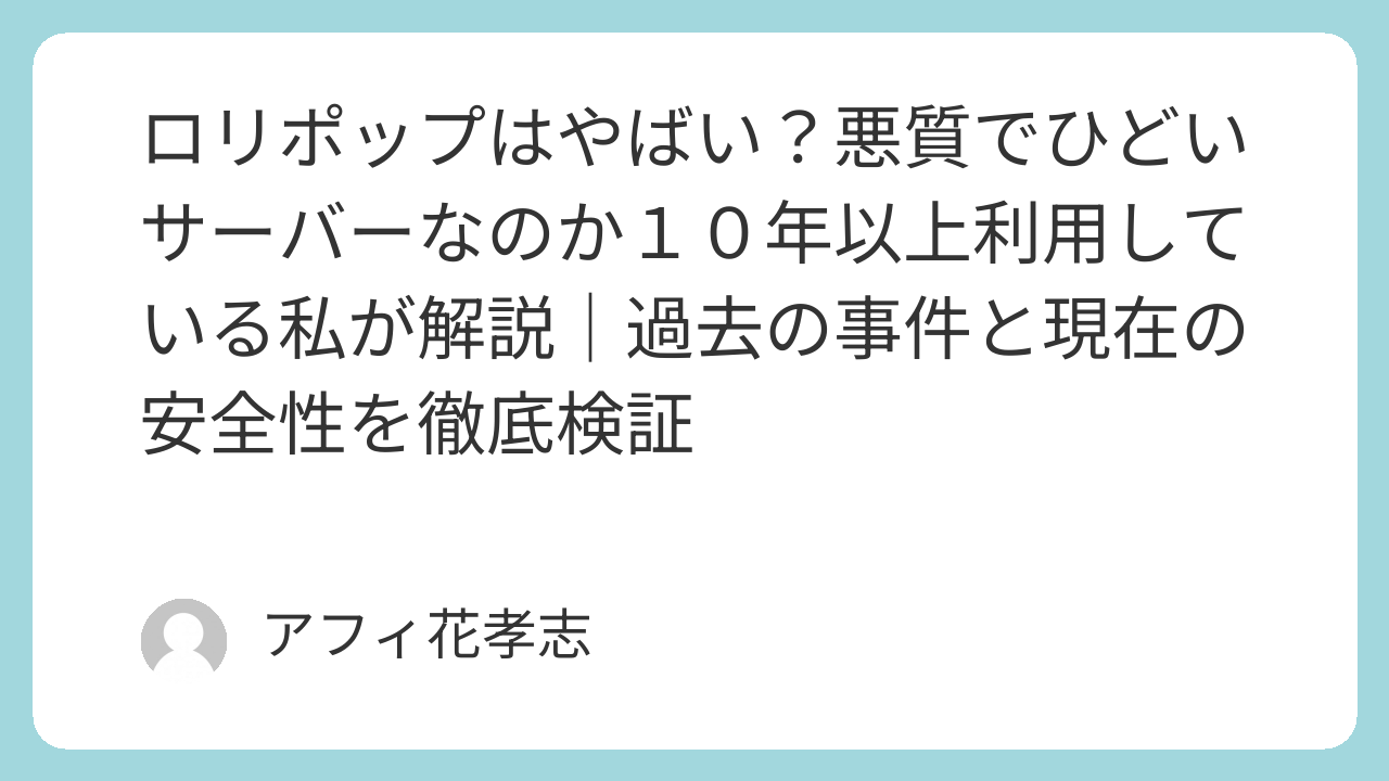 この事件はレンタルサーバー業界全体に大きな衝撃を与え、ロリポップの評判を大きく損なう結果となり、現在でもネット上で「ロリポップ やばい」と検索される要因になっています。